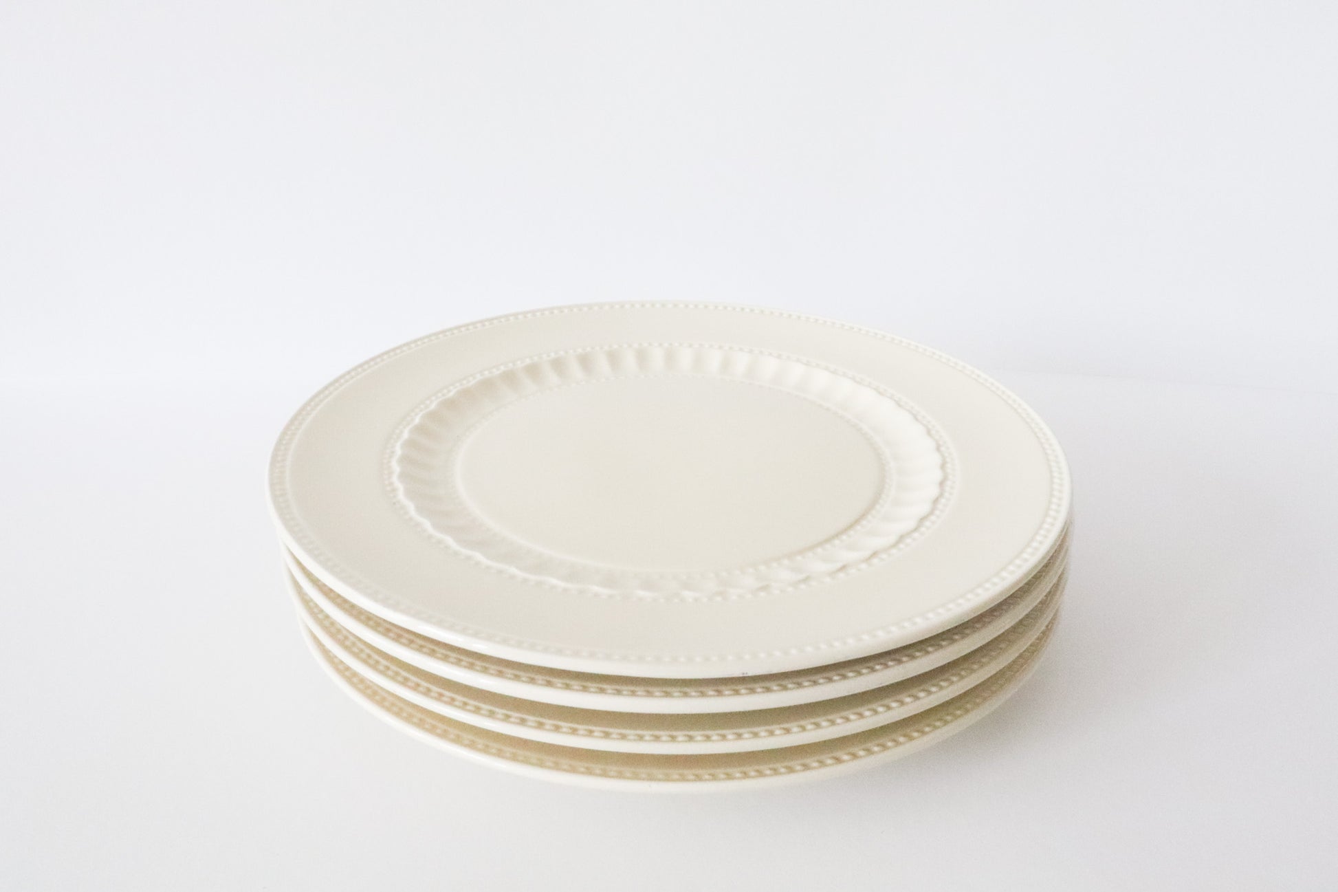 Set van 4 elegante en stijlvolle borden met reliëf langs de rand.