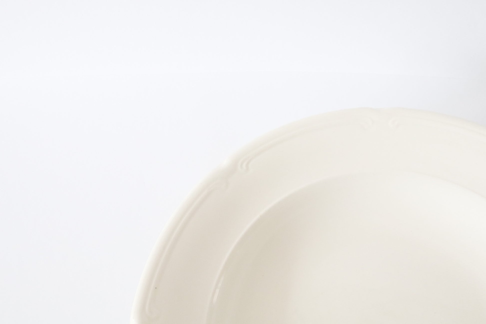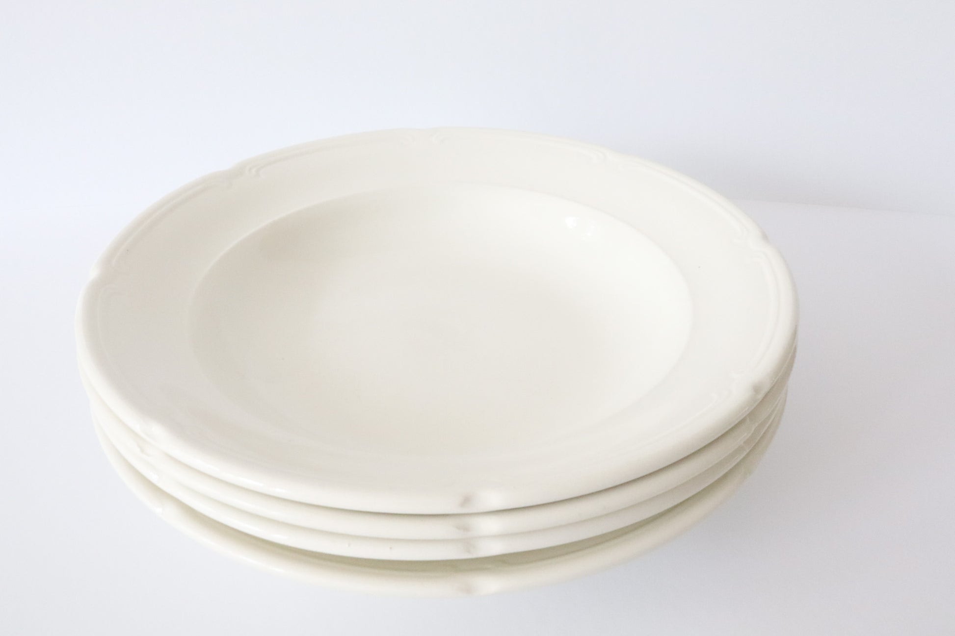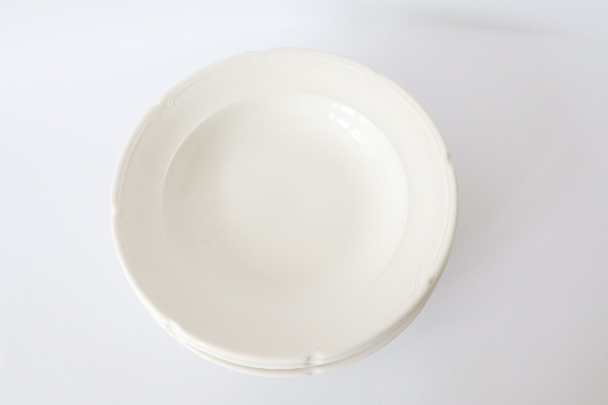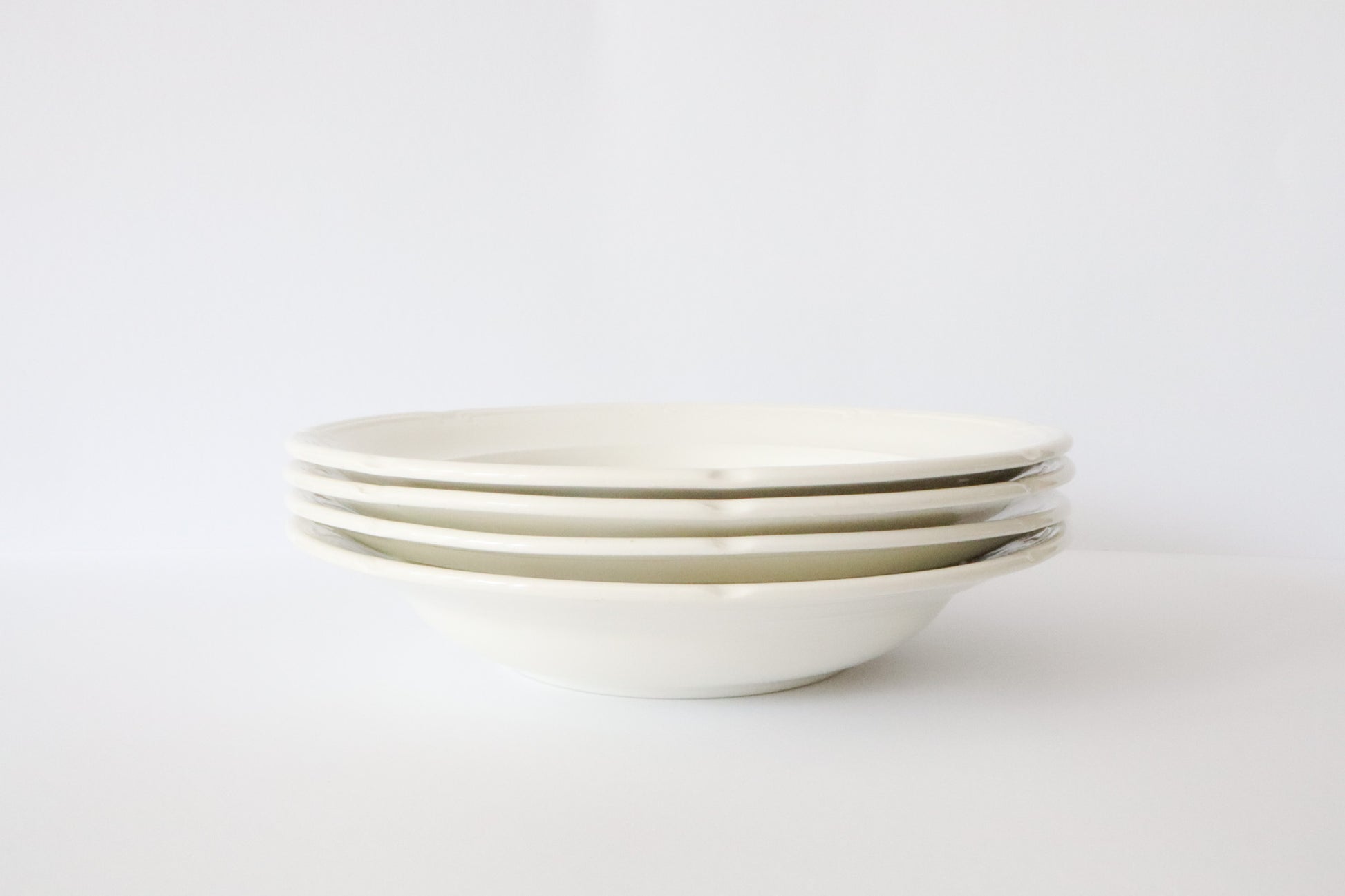Set van 4 neutrale diepe borden met subtiel reliëf aan de rand.