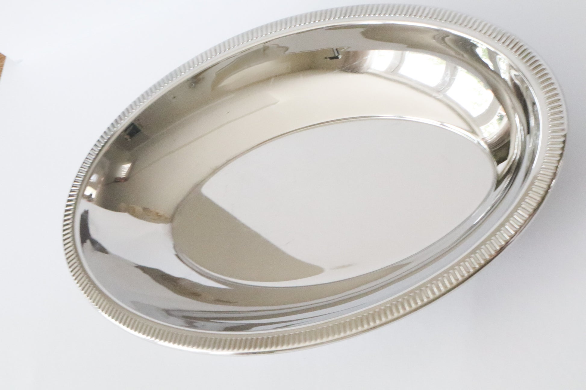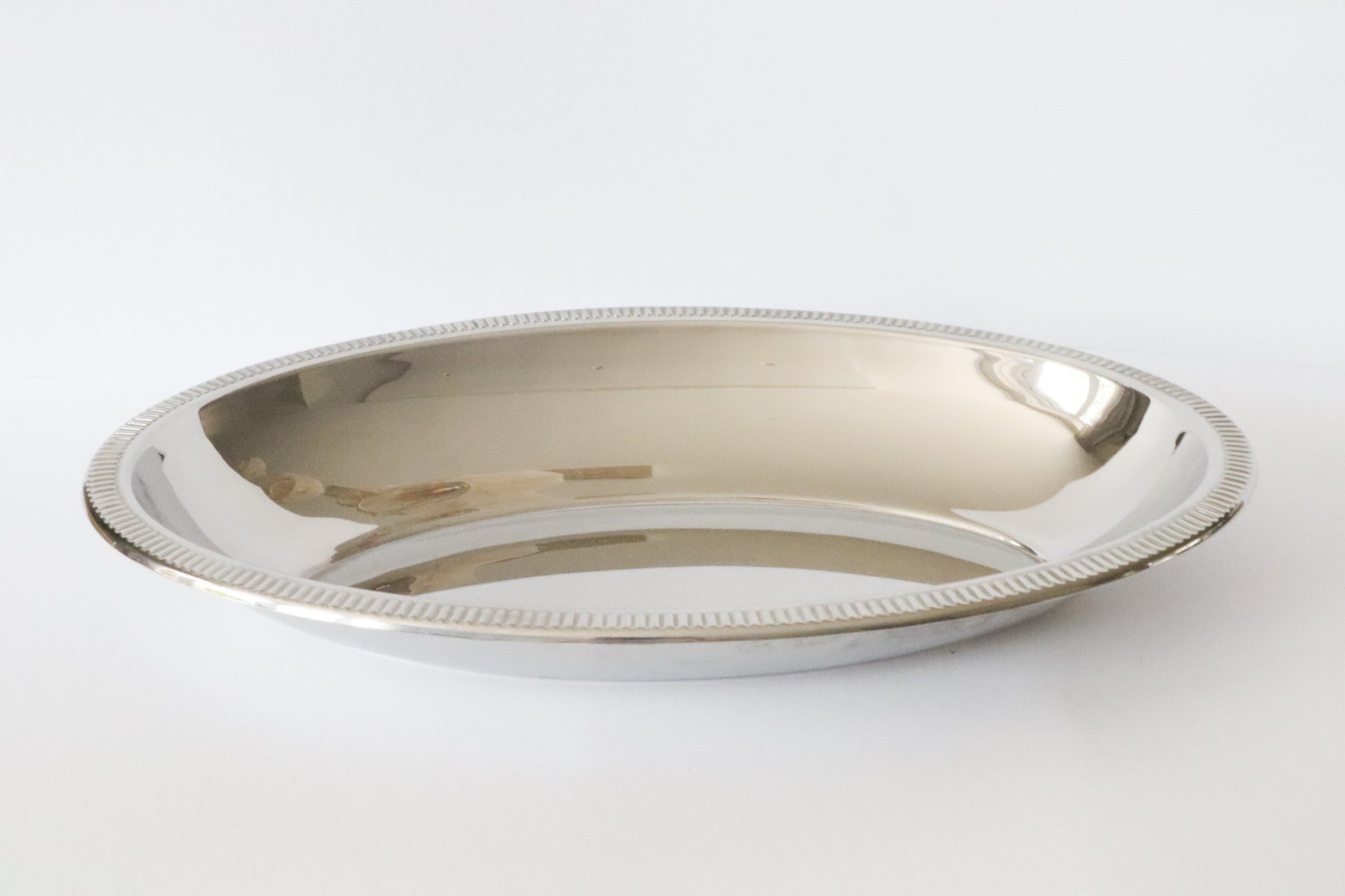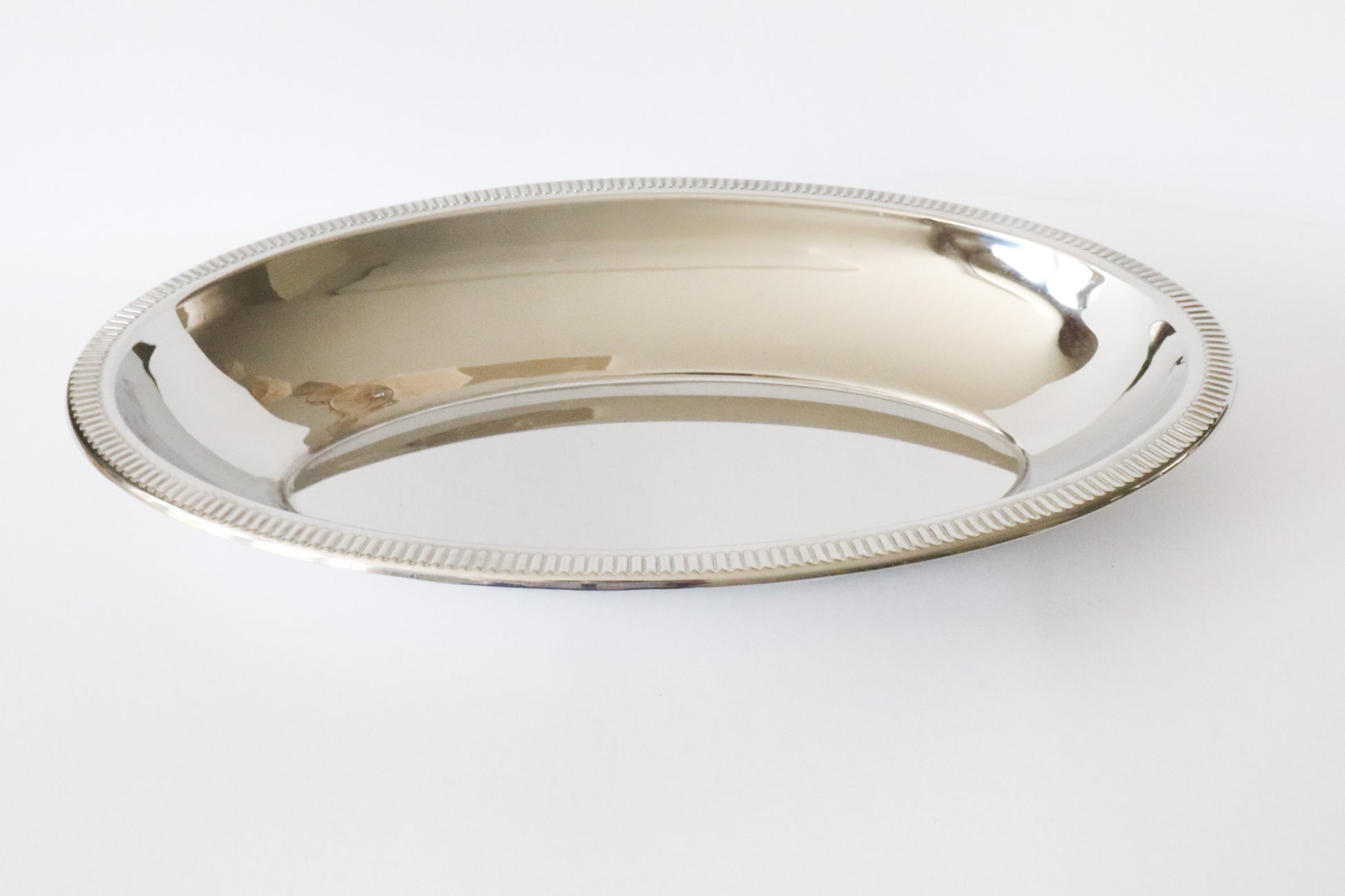 Zilveren schaal met een klassieke, fijne ribbelrand. Maakt de tafel direct af.