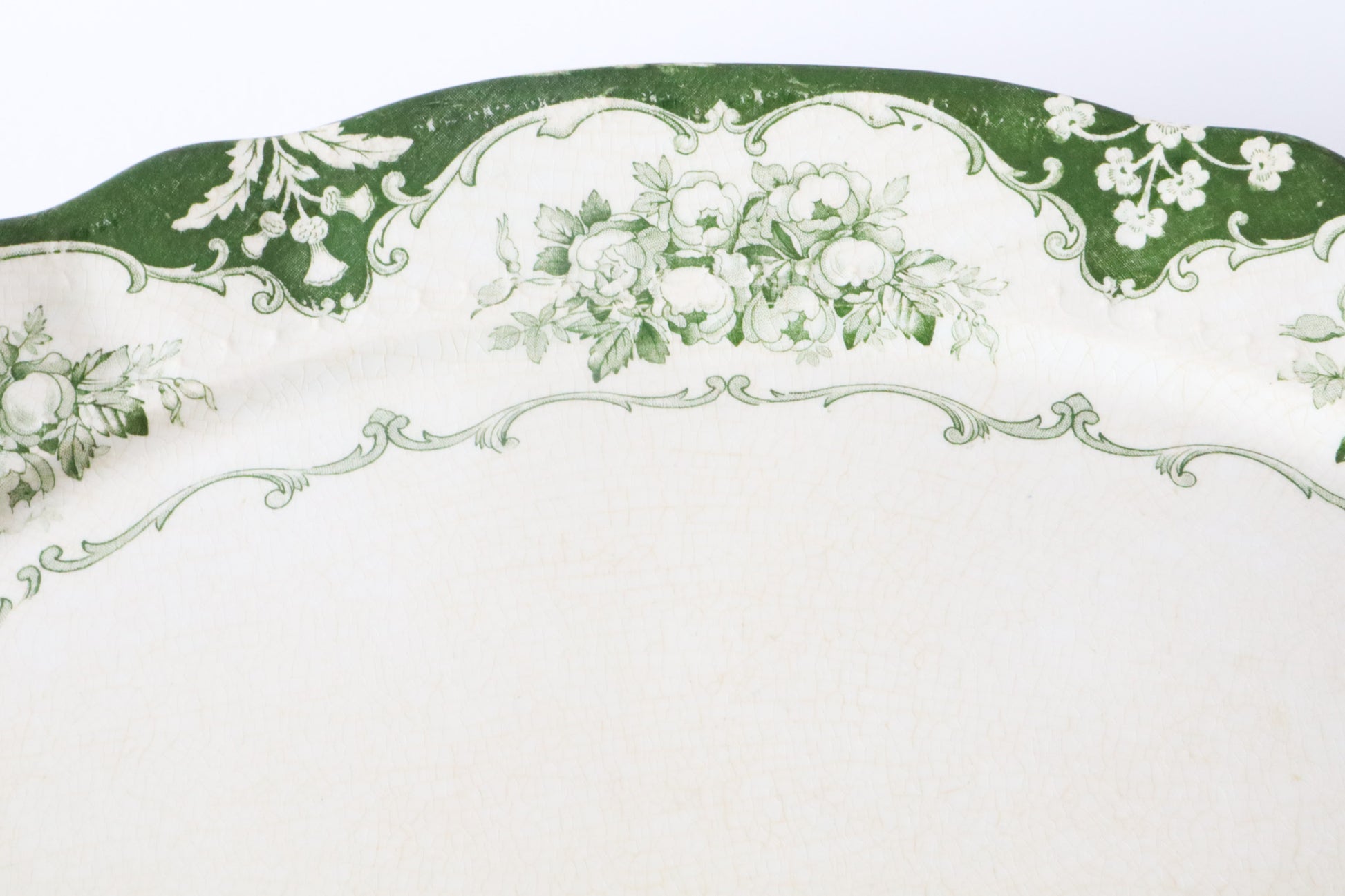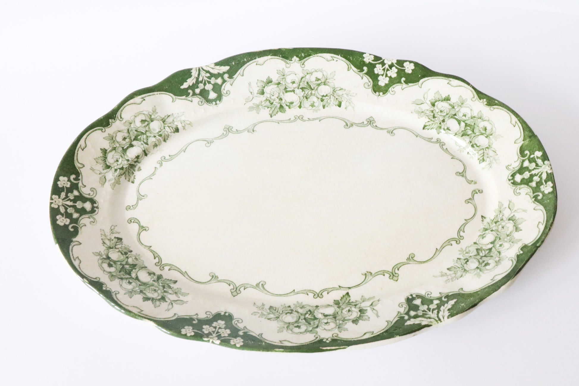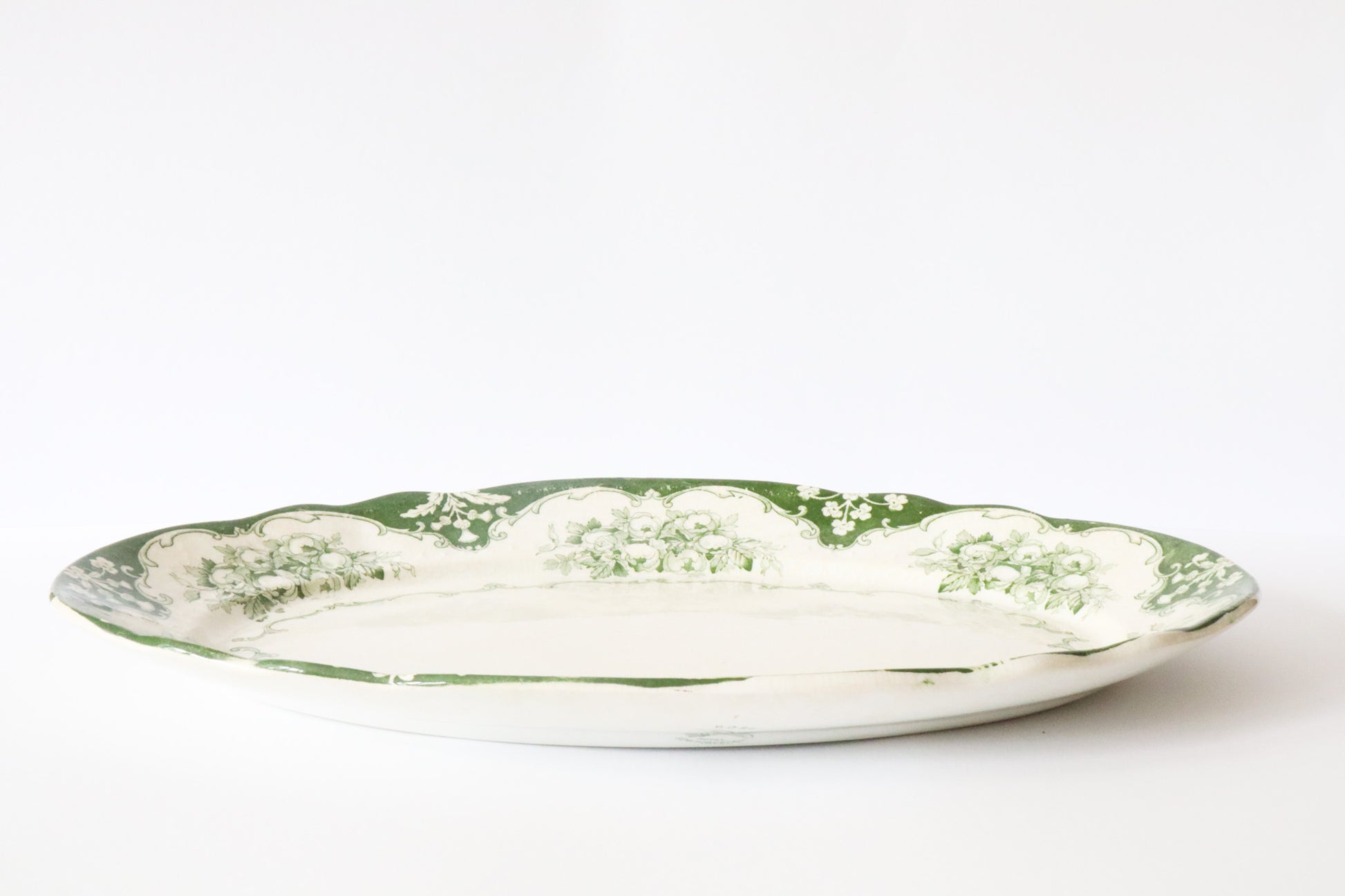 Prachtige ovale schaal met groen bloemendecor. Ideaal voor feestelijk serveren.