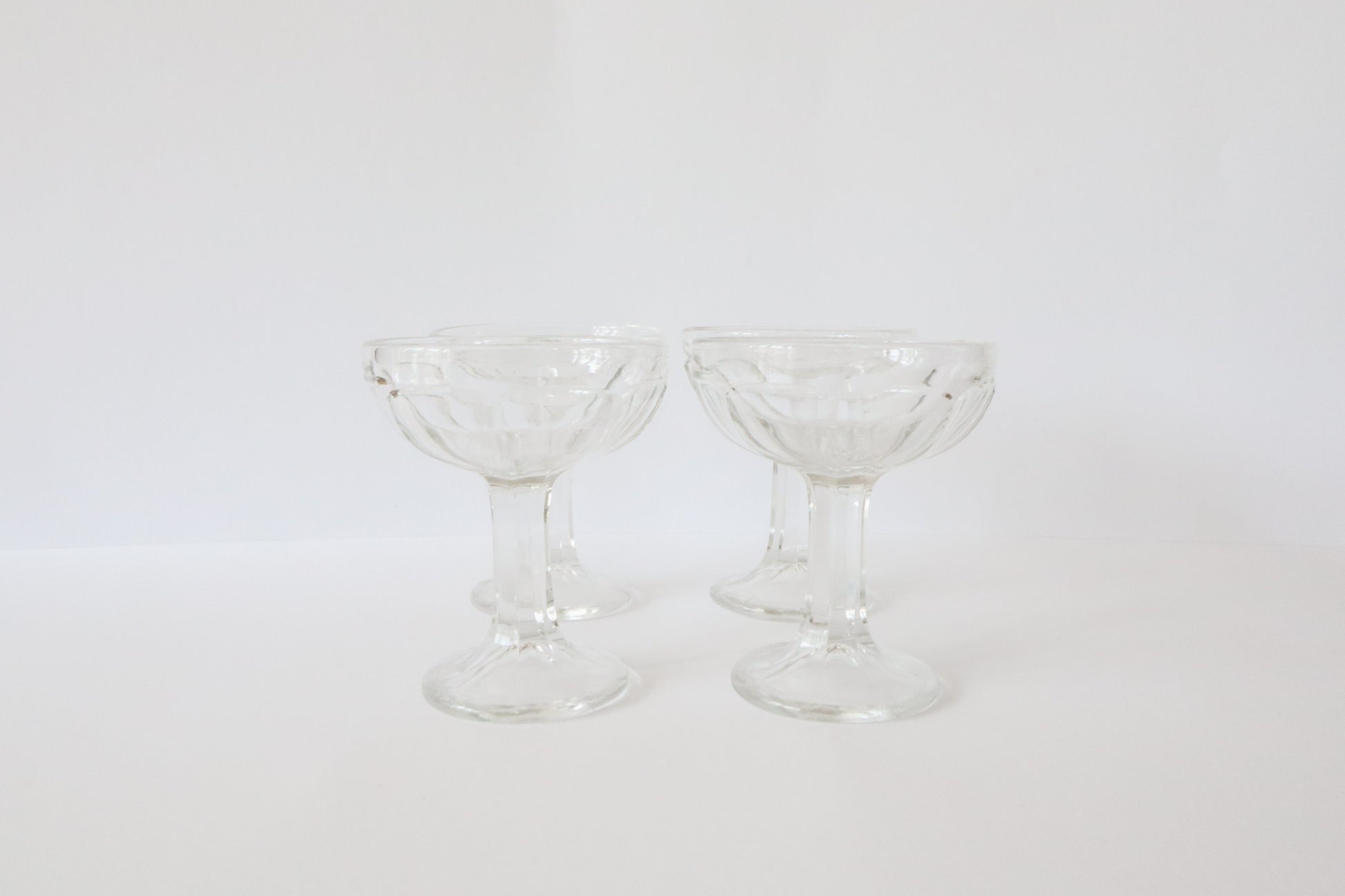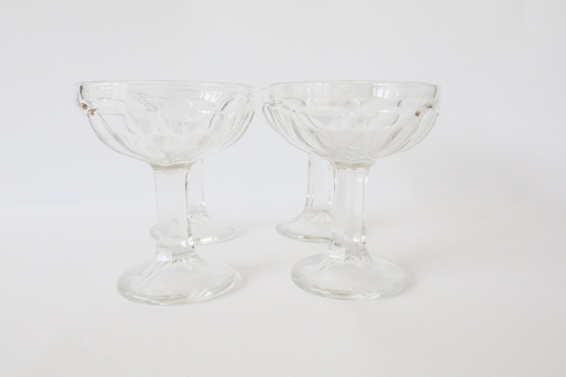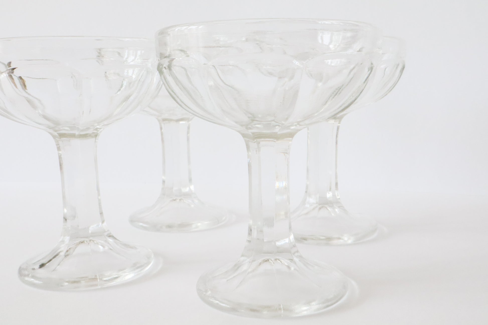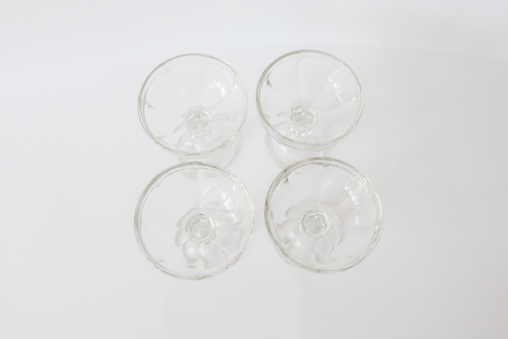 Set van 4 kleine wijnglazen met sierlijk reliëf.
