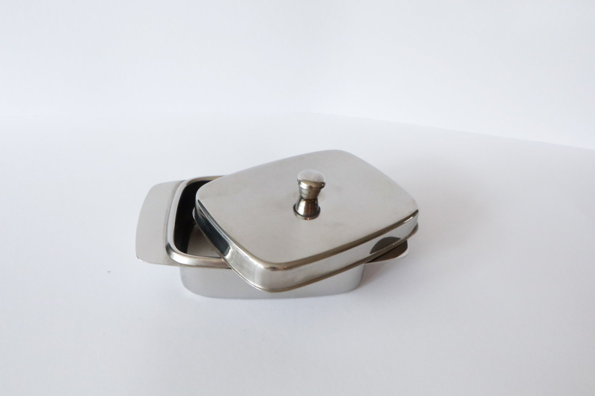 Zilveren botervloot met deksel.