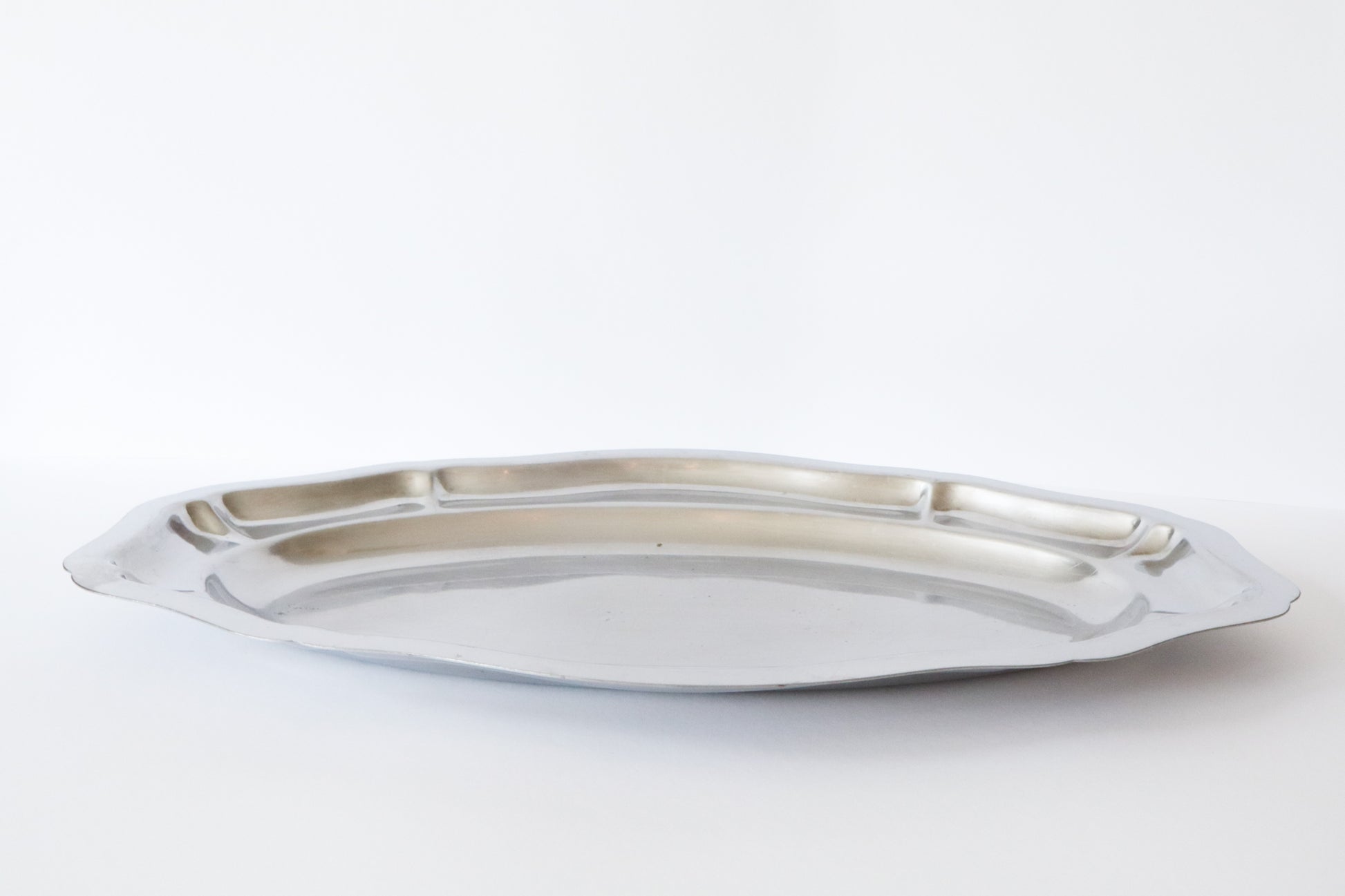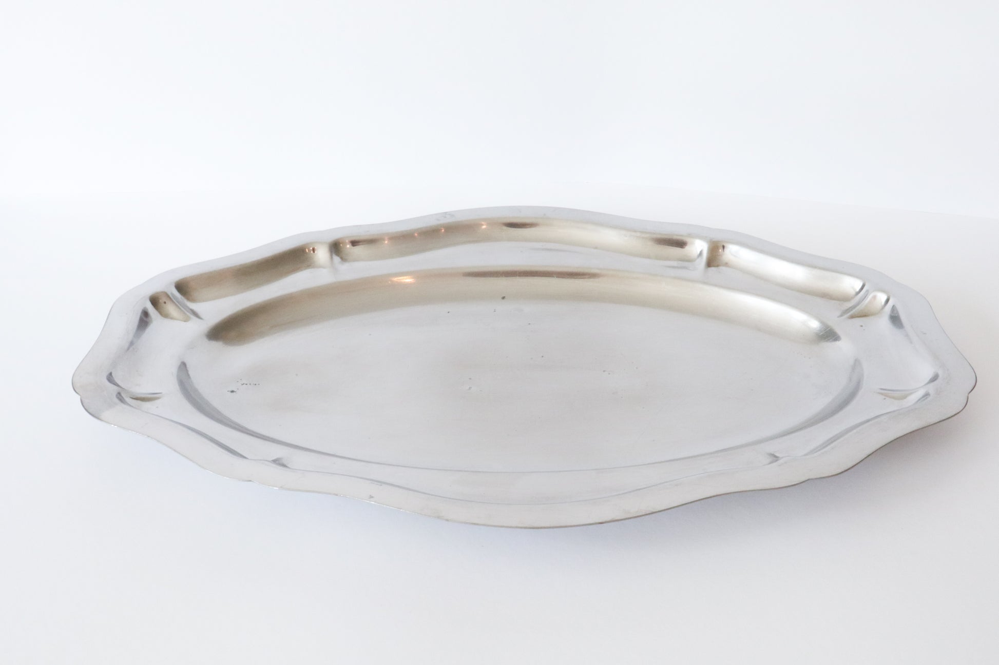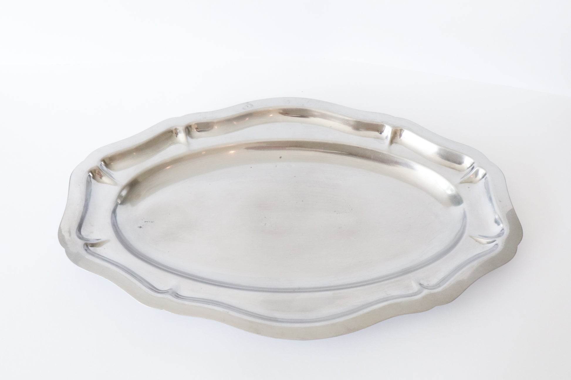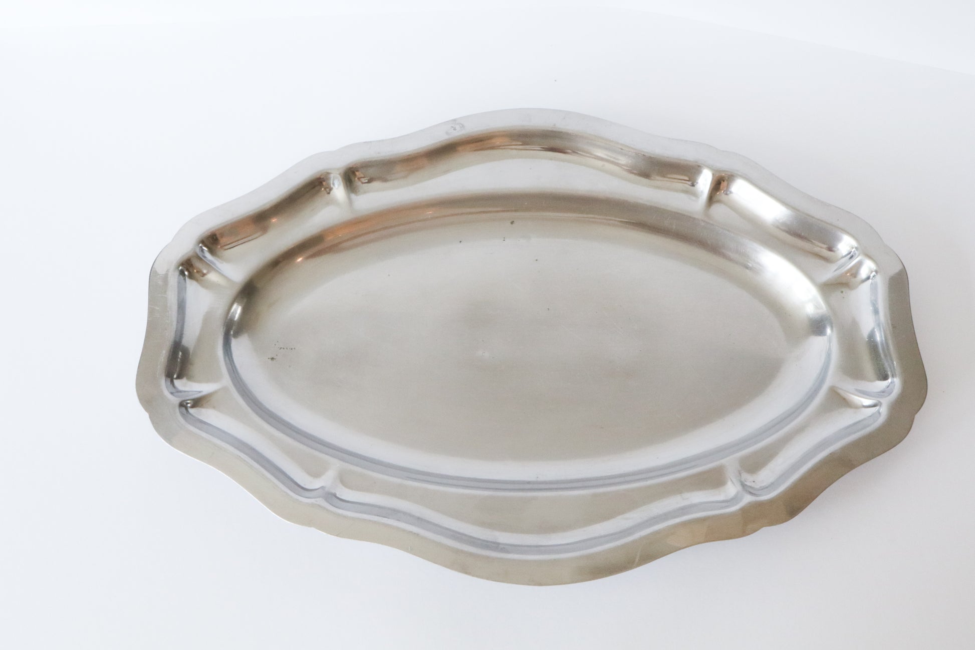 Golvende zilveren serveelschaal. Hele lichte gebruikerssporen.